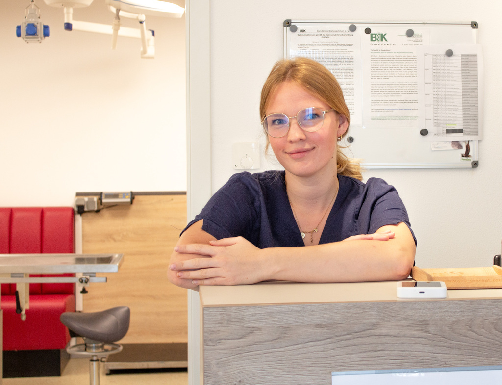 Schwester Friederike aka 'Freddy' ist seit 2019 Tiermedizinische Fachangestellte und Praxismanagerin.